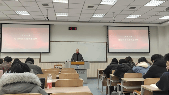 2025年12月3日,学校党委副书记王强为汉学院·中亚学院、艺术学院2024级部分学生讲授《建设社会主义生态文明》专题思政课。